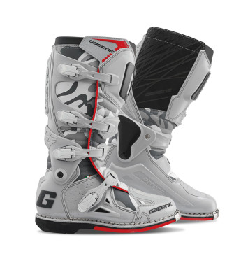Gaerne GXJ gyerek verseny csizma, dupla csuklós bokaszerkezet, 4 db fém csat, spiccvas a csizma elején. Nagyobb szabás, magasabb szárú mint az SGJ gyerek csizma, nagyobb gyerekekre ajánlott.