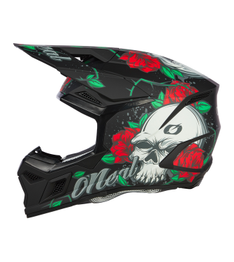 O'Neal 3 széria cross sisak, műanyag héjjal, kivehető mosható béléssel, szellőzőkkel, dupla D-gyűrűs csattal.